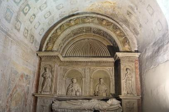 The church houses a tomb with an epitaph in Latin (memento mori) which serves as the prototype frequently seen on contemporary tombs: ’what you are I was, what I am you will be’ (quod vos etis, ego fui; quod sum, vos eritis).