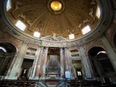 To the left of the altar an exit leads to a chapel the tomb of King Charles Emmanuel IV of Sardinia and Piedmont who abdicated the throne to enter the Society of Jesus.
