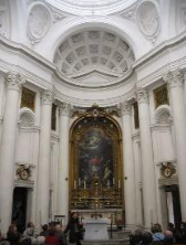 The compact church encompasses a central plan (oval/rectangle). Its design expresses the post-Tridentine emphasis on preaching and Eucharist. Because of the small size of the structure, the nickname for the church, the ‘Carlino’, literally “Little Charles” fits supremely well.