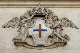 Embedded in it are many symbols, most with a reference to the Temple of Solomon: cherubs, palms, crown of eternal life. The Greek cross symbol adopted by the Trinitarian Order on their habits appears often in many of the design features of the church including the façade.