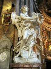 Pope Clement IX commissioned Gian Lorenzo Bernini in 1668 to replace the 16th century statues of Saints Peter and Paul and other apostles installed by Pope Clement VII as decorations for a visit to the City of the l Holy Roman emperor, Charles V. Clement sought to modernize the bridge and create a more gran d and religious approach, a Via Dolorosa, to the Vatican. Its central span hovers above five harmonious Roman arches together with its Bernini-school sculptures rightly justify its reputation as the City’s most attractive bridge. Bernini designed life-sized angels bearing the instruments of Christ’s passion. Executed mostly by his disciples, the sculptures differed in many ways, but each one expressed great emotional fervor and dynamic movement. Bernini sculpted two angels, never intended for display on the bridge itself: an angel with the crown of thorns;