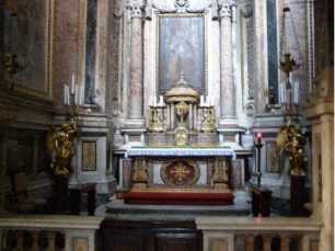 Near the apse on the right aisle a set of stairs ascends to a neo- classical monument carved by Antonio Canova. It belongs to Leonardo Pesaro, sixteen-year-old son of Pietro Pesaro, Venetian Ambassador to the Papal States. The pair of lion faces carved on the plinth refers to the family connection to Venice.