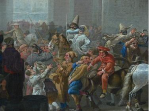 In antiquity the Via del Corso did not yet exist. Instead, the Via Flaminia began at the foot of the Capitoline Hill and and ran North towards the Milvian Bridge. During the Middle Ages this same road became known as the Vita Lata (wide) because of its great breadth. From the 15th to the late 19th century the Via Lata served as the center for the City’s hugely popular, pre-Lenten, 10 day, Carnival, activities (Mardi Gras). These focused on races of diverse kinds: horse races, some with riders, other riderless; donkey races; buffalo races, foot races by individuals or groups of boys and men of different ages, and float parades. During the 15th century reign of Pope Paul II (Barbo) it became known as the Via del Corso in honor of these annual Carnival races conducted up till the late 19th century.