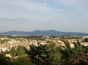 The very well-preserved walls still serve to define the boundary of the historic center, despite the ever-expanding sprawl of its suburbs towards the surrounding hill towns (Castelli Romani) in the distance.